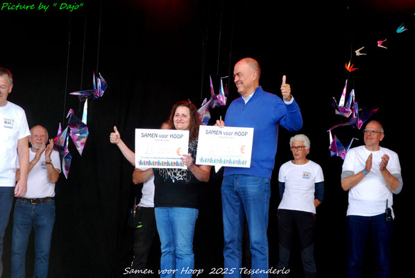 Laatste weekend van september, staat in vele agenda's genoteerd met "Samen voor Hoop". Een evenement voor een goed doel, dit jaar was het "Stop darmkanker onder leiding van Dr Luc Colemont& Labo Erfelijke Zenuwaandoeningen onder leiding van Prof Dr Hilde Brems. Zondagnamiddag mochten ze ieder het bedrag van 25000 euro ontvangen voor hun onderzoeken naar deze twee ziektes.